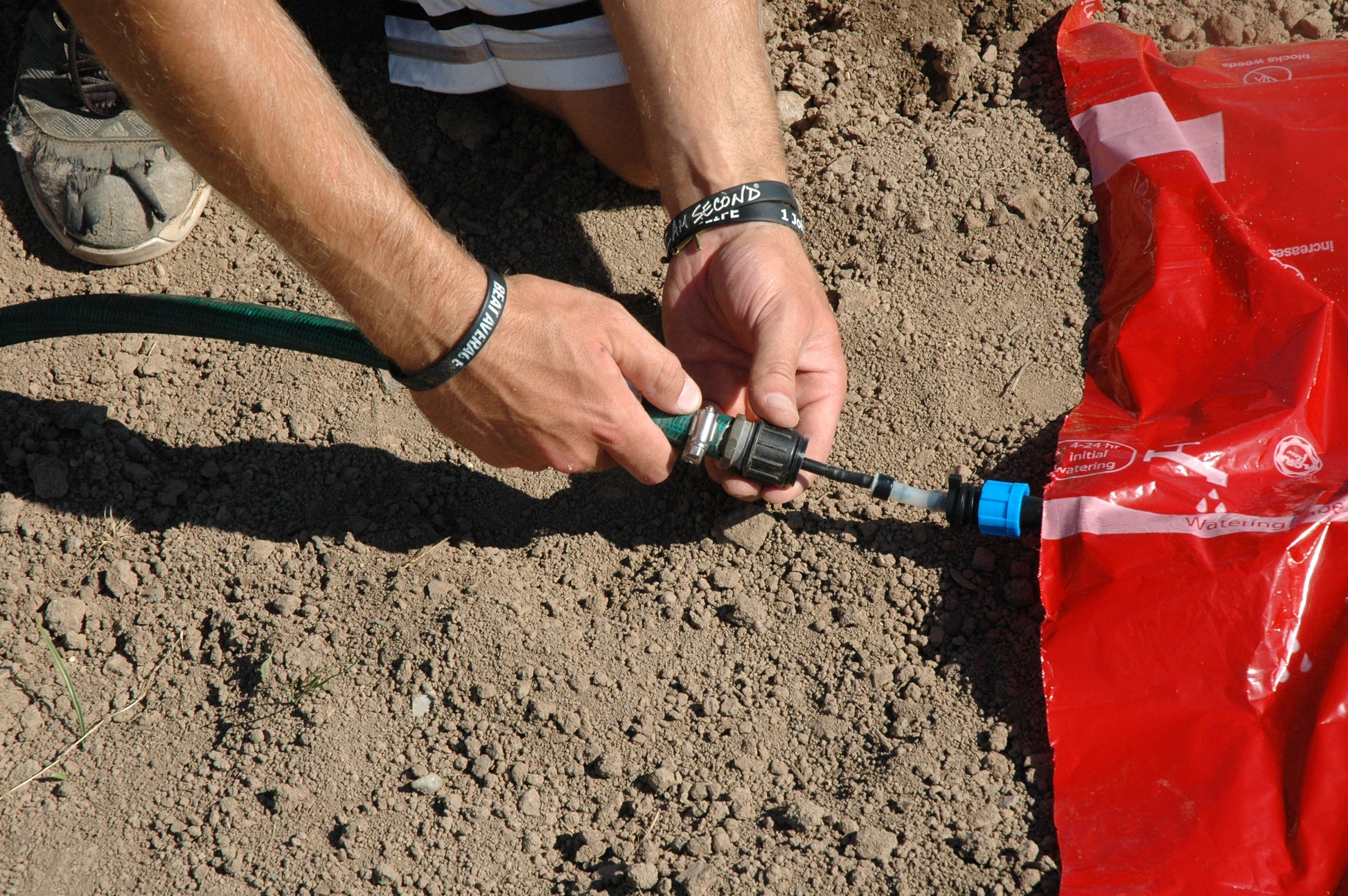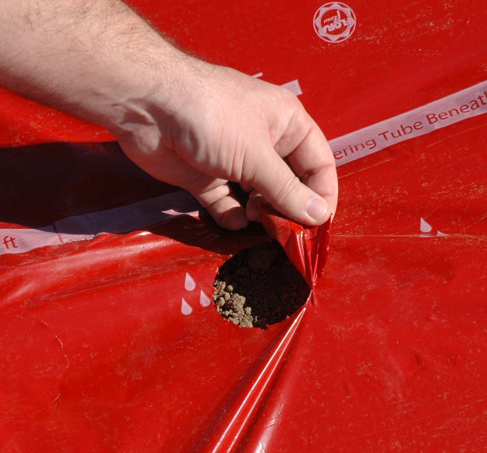 To set it up, just lay the mat out, add soil to the edges, and plant through the perforated holes.