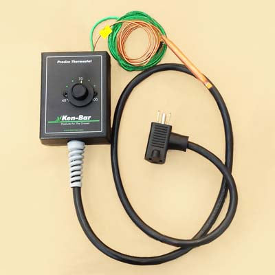 temperature dial and a bulb sensor with a 2-foot lead. A light indicates